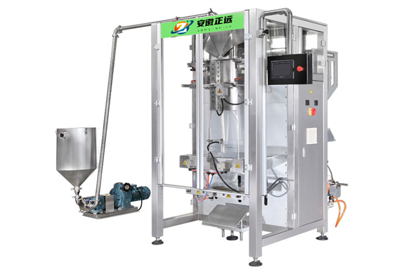 立式全自动液体包装机组特别适合计量包装液体、膏体类的物料,如:纯净水、火锅底料、防水涂料、豆沙酱、建筑胶水等液体,膏体状物料。